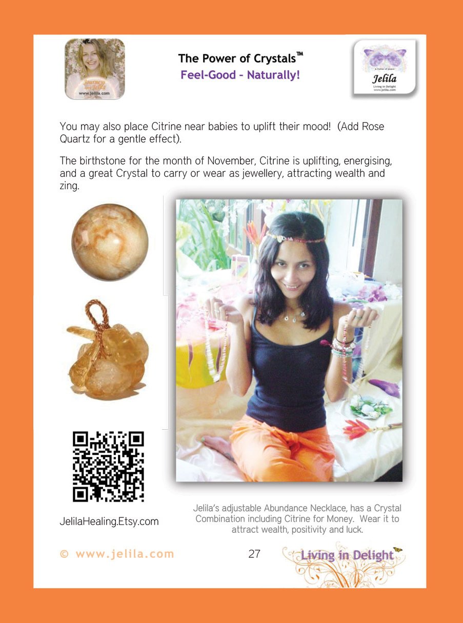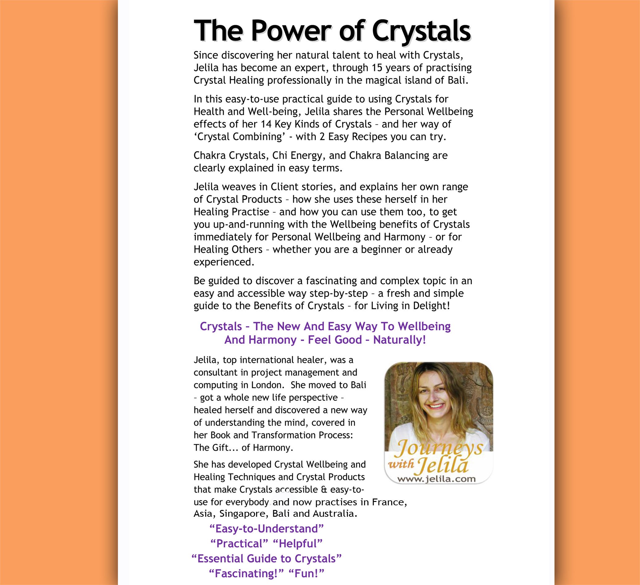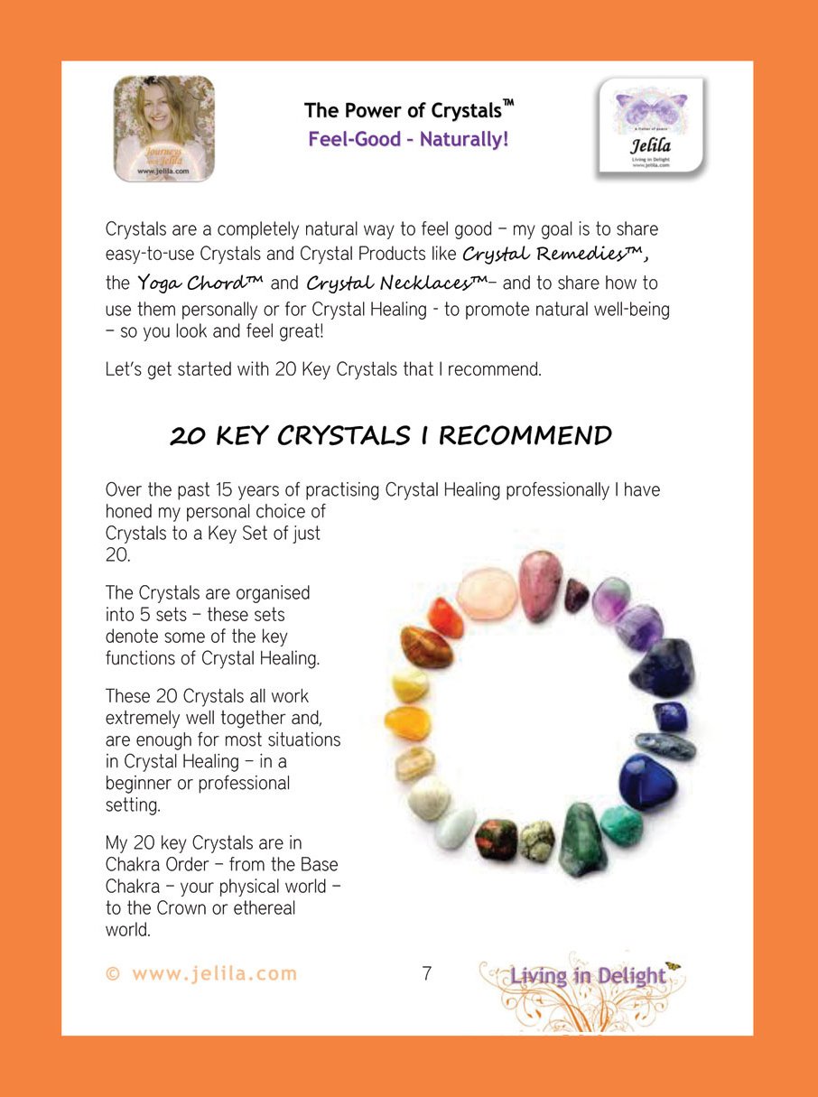 'The Power of Crystals' by Jelila is in Full-Colour - packed with images, practical step-by-step guide to using Crystals and specifically Jelila's range of Crystal Healing Necklaces, for Healing and Personal Wellbeing. Find out which Crystals to use for Which Chakras. Find out which of Jelila's ready-made Crystal Healing Necklaces are Best for You - and Feel Like a Goddess - Every day!