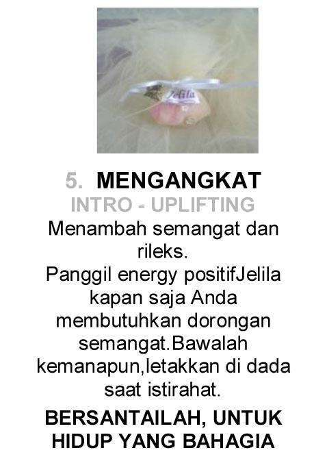 Panggil energy positifJelila kapan saja Anda membutuhkan dorongan semangat.Bawalah kemanapun,letakkan di dada saat istirahat.